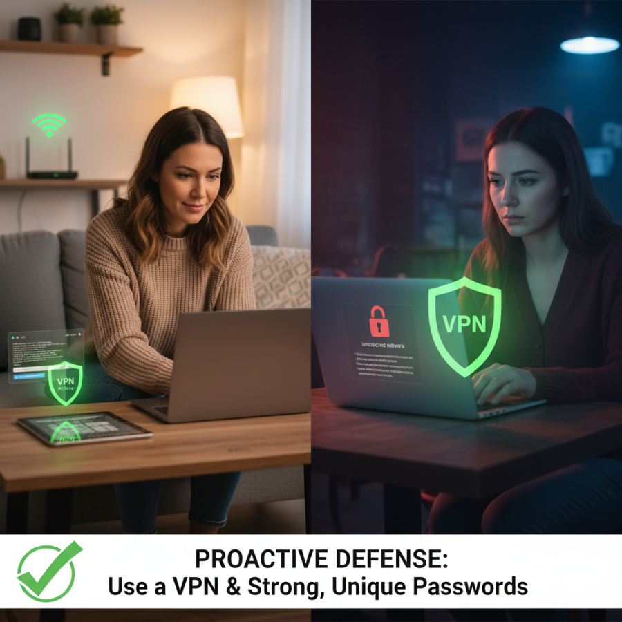 Shopping only on secure Wi-Fi or through a trusted VPN